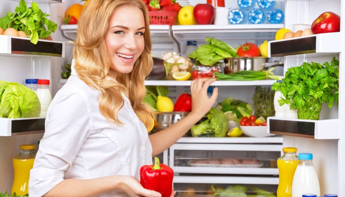 Bước 6. Mở rộng cửa tủ và chờ thêm tầm 5 - 10 phút cho tủ hoàn toàn khô thoáng, sau đó bạn hãy cho những thức ăn, thực phẩm vào lại trong tủ. Bạn nên sắp xếp lại thực phẩm một cách ngăn nắp và gọn gàng như thế sẽ giúp bạn dễ dàng tìm kiếm khi cần sử dụng.