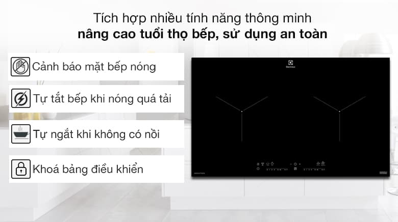 Tự ngắt bếp khi không có nồi: bếp chỉ hoạt động khi có dụng cụ phù hợp được đặt trên mặt bếp.