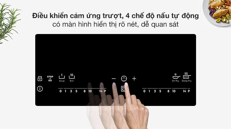 Bếp âm từ Electrolux 2 vùng nấu EHI7280BB tích hợp sẵn 4 chế độ nấu ăn mặc định bao gồm nấu súp, đun sôi, chiên hoặc chiên ngập dầu đã được lập trình sẵn mức nhiệt phù hợp với từng loại nguyên liệu, công thức. Nhờ đó, quá trình nấu nướng của người dùng trở nên đơn giản, nhanh chóng hơn bao giờ hết nhưng vẫn đảm bảo sự tươi ngon chuẩn vị trong từng món ăn.