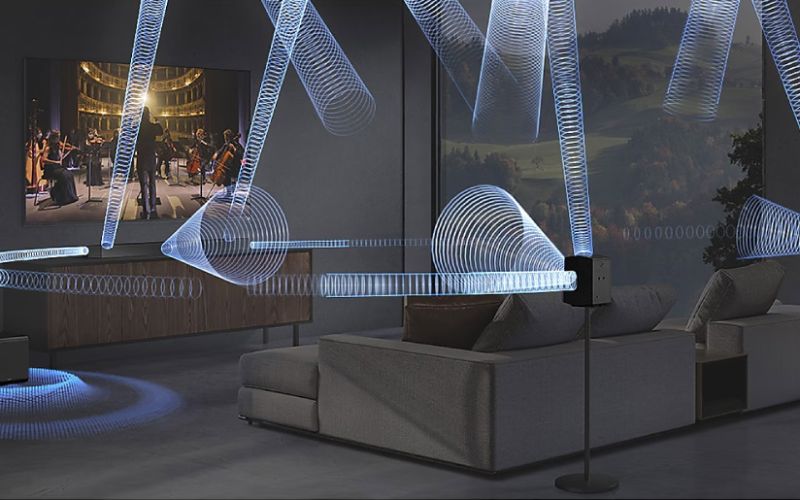 Công nghệ Q-Symphony đồng bộ hoàn hảo âm thanh giữa bộ loa thanh và tivi