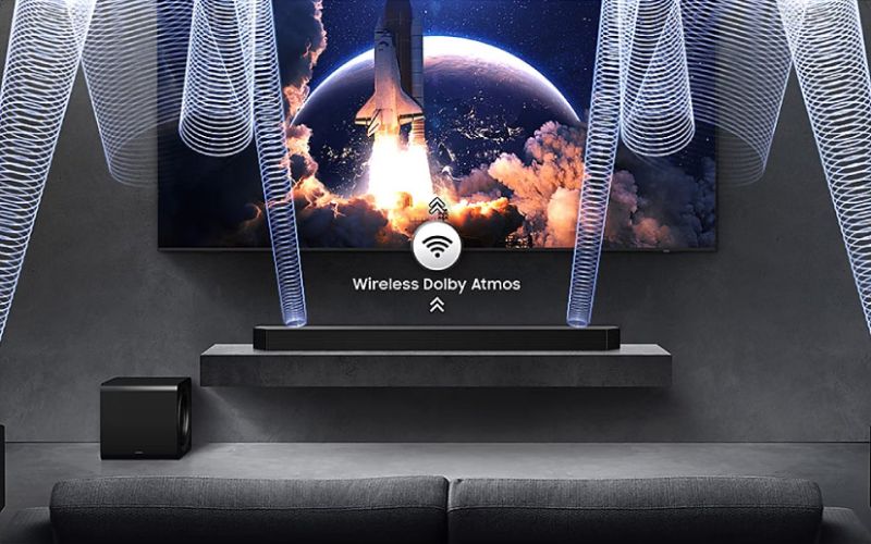 Công nghệ âm thanh vòm Dolby Atmos không dây tái tạo hiệu ứng âm thanh 3D chân thật, người dùng có thể tận hưởng không gian âm thanh bao trùm mà không cần đến các kết nối dây phức tạp giữa tivi và loa thanh.