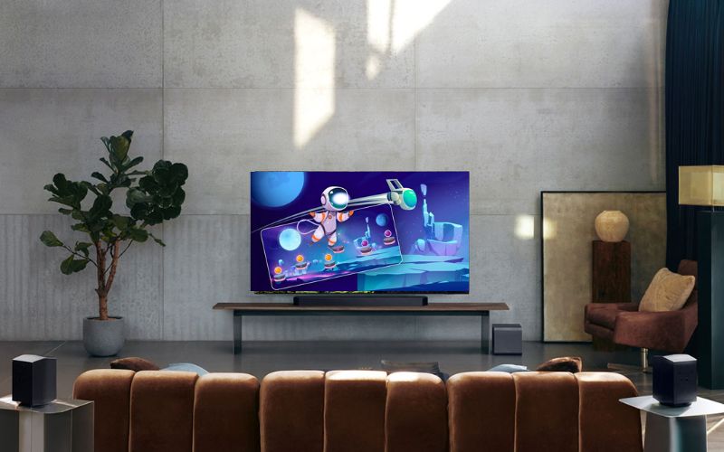 Tổng cộng 23 củ loa kết hợp với công suất mạnh mẽ 756W mang đến khả năng tái tạo âm thanh cực kỳ sống động, cho người xem đắm chìm trọn vẹn trong không gian âm thanh vòm đa chiều. Mỗi hiệu ứng, mỗi giai điệu đều được truyền tải rõ nét và chân thực, tạo cảm giác bao phủ toàn bộ giác quan như đang bước vào chính khung cảnh của bộ phim hay bản nhạc.