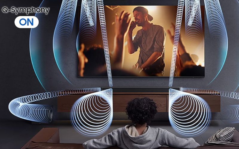 Công nghệ Q-Symphony đồng bộ âm thanh hoàn hảo giữa loa thanh và tivi.