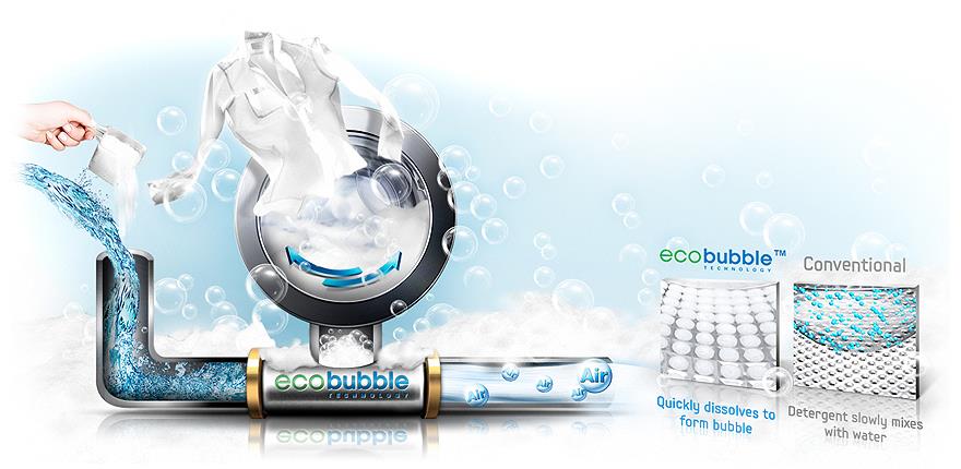 Công nghệ này cho phép trộn nước và không khí vào bột giặt sau đó sẽ đánh tan bột giặt, tạo bong bóng khí giúp thấm vào quần áo nhanh hơn 40 lần nếu so với thông thường (thông thường bột giặt sẽ không được đánh tan trước khi đưa vào lồng giặt). Đối với công nghệ này, bọt bong bóng sẽ góp phần phân tán bột giặt đều hơn, giúp thẩm thấu nhanh hơn cho phép giặt sạch quần áo nhanh hơn.
