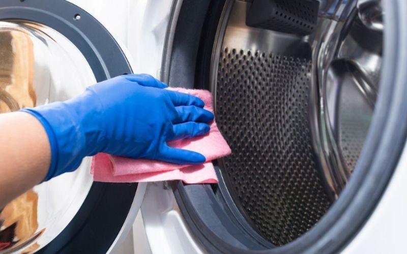 Khởi động máy giặt và đợi chu trình vệ sinh kết thúc, lau khô bằng khăn, mở cửa máy để thoáng khí, lồng giặt khô ráo, hạn chế nấm mốc, mùi hôi.