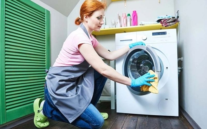 Lau chùi bề mặt máy giặt, duy trì độ bền đẹp theo thời gian