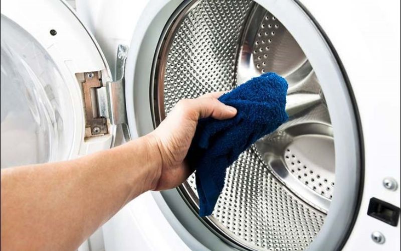 Lau sạch lồng giặt, mở cửa để máy khô ráo