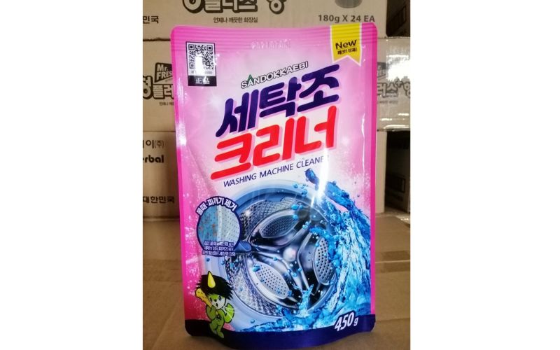 Bột vệ sinh máy giặt Hàn Quốc nổi bật với các thương hiệu Sandokkaeki, Smile Mon được sử dụng phổ biến có khả năng loại bỏ các cặn bẩn, canxi, diệt khuẩn cho cả máy giặt lồng đứng và lồng ngang, không cần tháo máy giặt ra vệ sinh, làm sạch lồng giặt hiệu quả, giữ quần áo sạch sẽ, tăng tuổi thọ thiết bị.