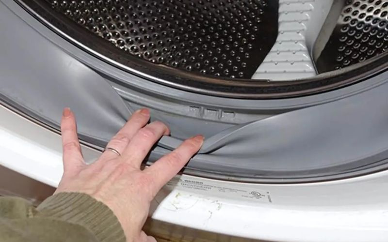 Dùng khăn mềm lau sạch bề mặt gioăng máy giặt