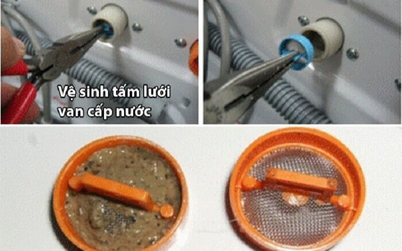 Vệ sinh van cấp nước cho nước vào máy tốt, không tắc nghẽn