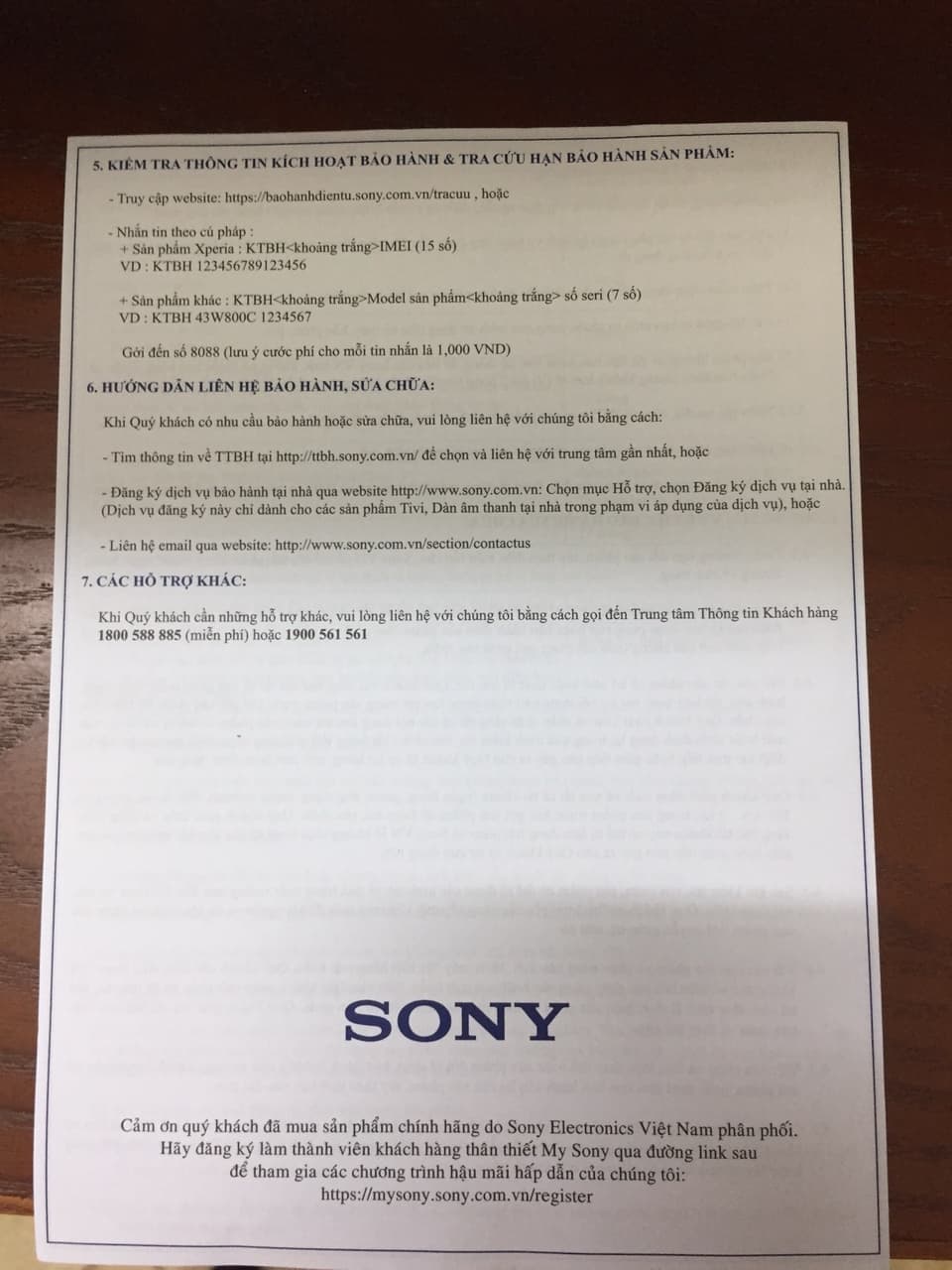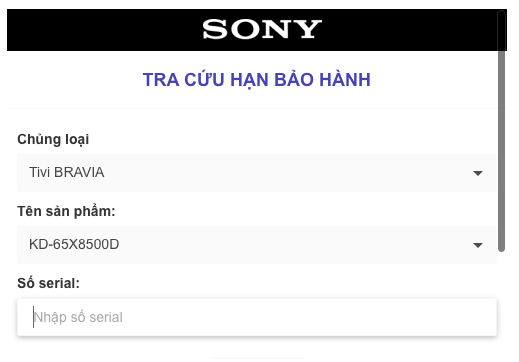 Ví dụ khách hàng có thể tra cứu hạn bảo hành sản phẩm của Sony qua Link: https://baohanhdientu.sony.com.vn/tracuu
