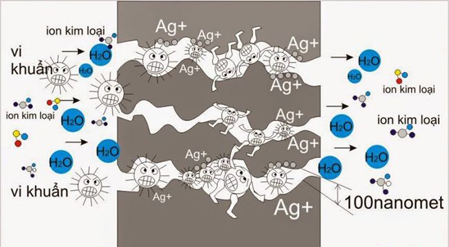 Các Ion Ag+ tác dụng với lớp màng của tế bào vi khuẩn, đi vào bên trong tế bào và phản ứng với nhóm sunphohydril (SH) của phân tử men chuyển hóa oxy và vô hiệu hóa men nà dẫn đến ức chế quá trình hô hấp của tế bào vi khuẩn. Ngoài ra, các ion bạc còn có khả ức chế quá trình phát triển của vi khuẩn bằng cách sản sinh ra oxy nguyên tử hoạt tính trên bề mặt của hạt bạc. Thế nên người dùng có thể hoàn toàn an tâm khi sử dụng thực phẩm hay là tiếp xúc với luông khí lạnh bên trong tủ.