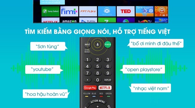 Tính năng tìm kiếm bằng giọng nói (Voice Search) hỗ trợ nhận diện giọng 3 miền Bắc, Trung, Nam của trên Sony Oled 65A1 thực sự tiện ích, giúp người sử dụng tiết kiệm công sức, thời gian khi tìm kiếm thông tin. Bạn không còn phải bấm từng phím vào remote như trước đây và kết quả tìm kiếm sẽ có chính xác và nhanh chóng hơn.