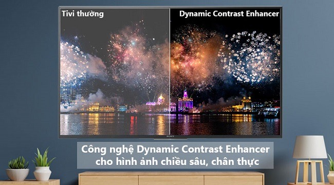 Bên cạnh đó, chúng ta không thể không nhắc tới công nghệ tăng cường độ tương phản động Dynamic Contrast Enhancer. Đây là công nghệ sẽ tối ưu hóa dải độ sáng của tivi một cách liên tục theo từng khung hình. Mức sáng được điều chỉnh chuẩn xác với những gì diễn ra trên màn hình. Vì vậy, những thước phim cảm giác chân thực và sinh động hơn.
