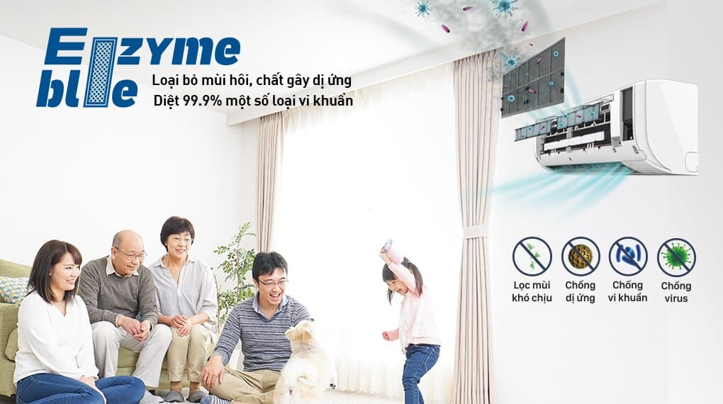 4. Khử mùi, diệt khuẩn, ngừa dị ứng hiệu quả đến 99.9% nhờ phin lọc Enzyme Blue mới