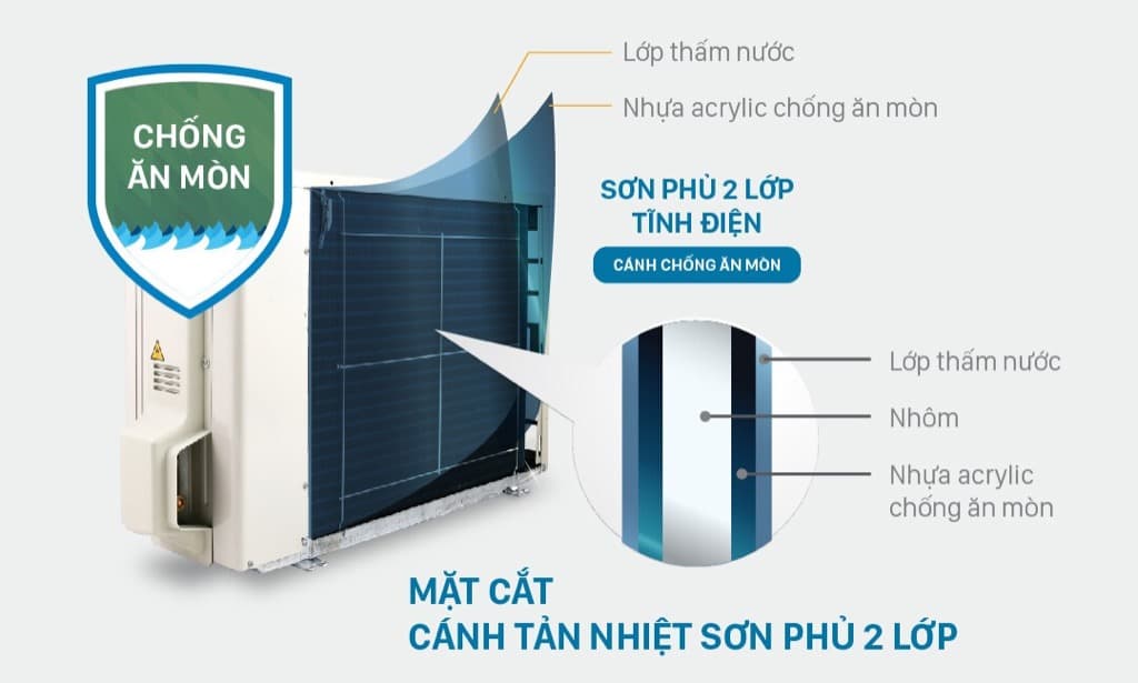Dàn nhiệt đồng cánh nhôm, bo mạch điện bảo vệ toàn diện vận hành bền bỉ hơn