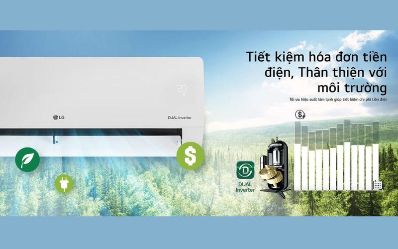Công nghệ Dual Inverter làm lạnh nhanh hơn 40%, tiết kiệm đến 70% điện năng.