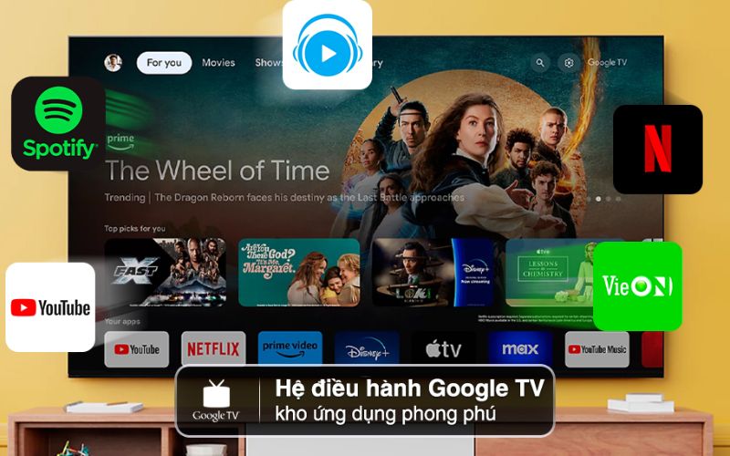 Hệ điều hành Google TV, đa tiện ích nâng cao trải nghiệm giải trí.