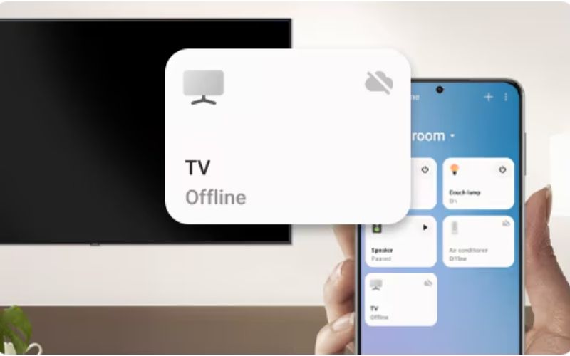 Bạn còn có thể kết nối với điện thoại qua SmartThings để tiện lợi điều khiển, chia sẻ nội dung, giải trí đa dạng, tiện nghi hơn.