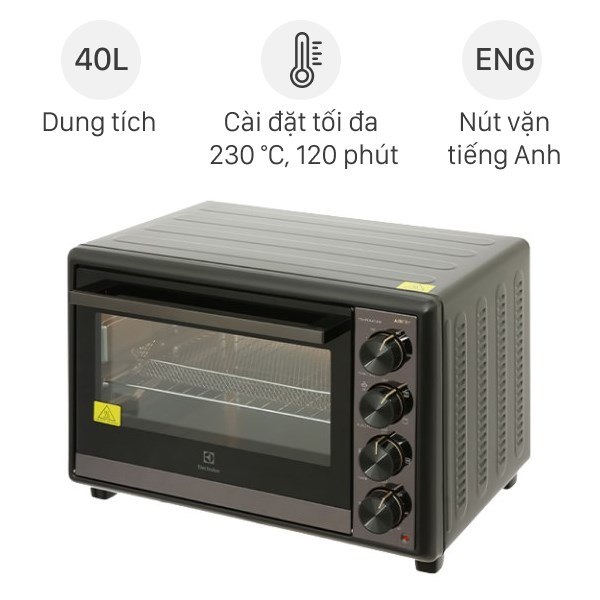 - Dung tích lò 40 lít có thể nướng được lượng lớn thực phẩm kể cả con gà 2.5 kg.