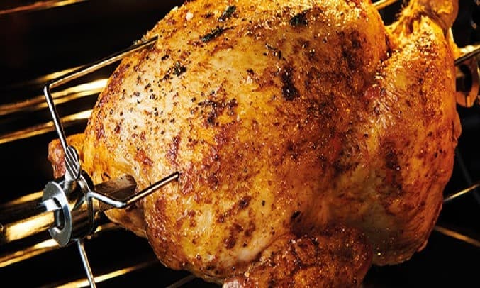 Đặc biệt, lò nướng còn trang bị xiên quay dùng để nướng cả một con gà vịt cỡ lớn vô cùng tiện lợi nhanh chóng.