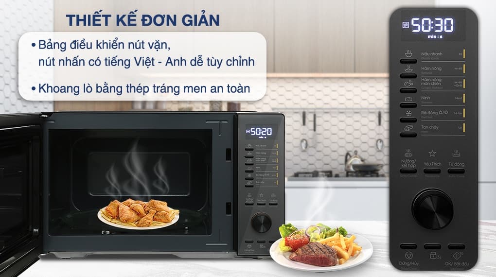 - Đa dạng chức năng, chế độ nấu, nướng, rã đông đáp ứng mọi nhu cầu nấu nướng của các gia đình.