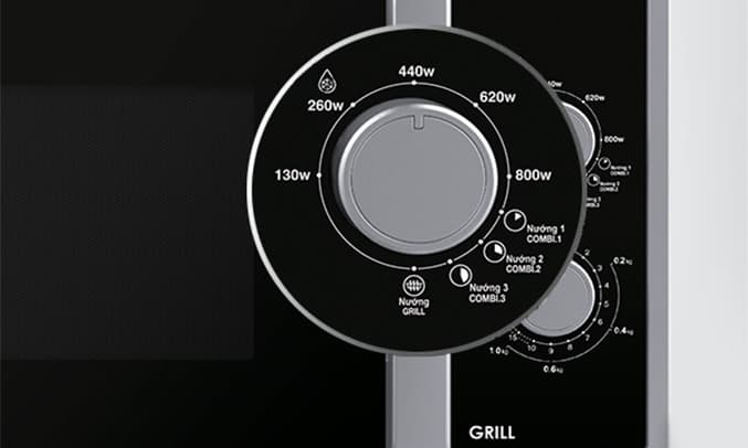 Lò vi sóng có công suất 800W giúp thức ăn được hâm nóng nhanh chóng để bạn có thể thưởng thức ngay lập tức mà không còn đợi quá lâu. Ngoài ra, máy còn có chức năng nướng với công suất lên đến 1000W làm chín thực phẩm trong thời gian ngắn hơn. Nhờ đó, nhu cầu làm nóng và chế biến thực phẩm của người dùng trở nên đơn giản dễ dàng hơn rất nhiều.