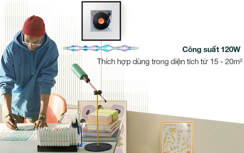 2. Sử dụng thích cho phòng 15 - 20m2 cùng hệ thống loa 2.0 kênh, công suất 120W