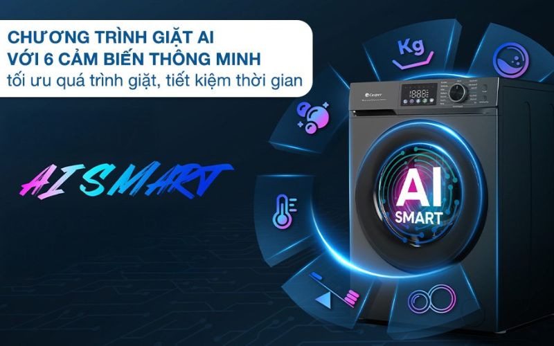 Điểm nổi bật nhất của chiếc Máy giặt Casper ProWash Inverter 9.5kg WF-D95VGR1 chính là ứng dụng công nghệ giặt thông minh AI Smart với 6 cảm biến: