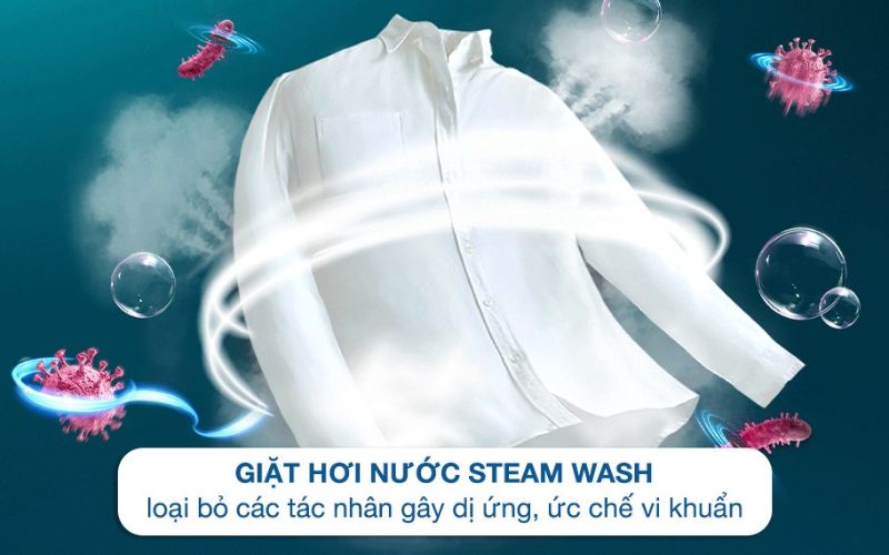 Công nghệ giặt hơi nước Steam Wash diệt 99.99% vi khuẩn, quần áo mềm mại hơn