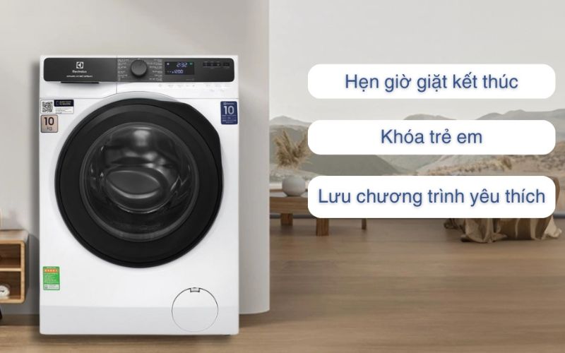 Máy còn tích hợp loạt tiện ích như lưu chương trình yêu thích, khóa trẻ em an toàn, hẹn giờ giặt, cho quá trình giặt giũ cá nhân hóa, phù hợp với nhu cầu bản thân và đảm bảo an toàn tối đa khi vận hành.