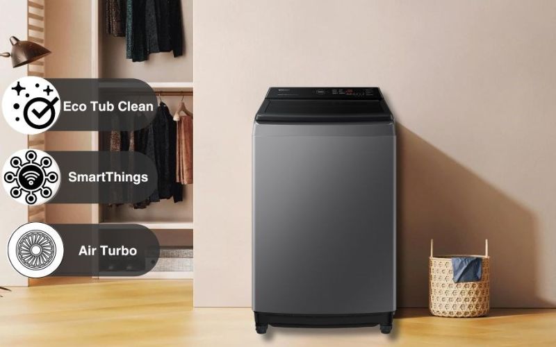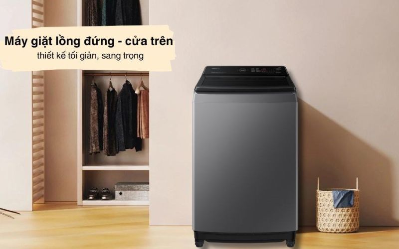 Chiếc máy giặt Samsung lồng đứng hiện đại hài hòa với mọi không gian giặt giũ