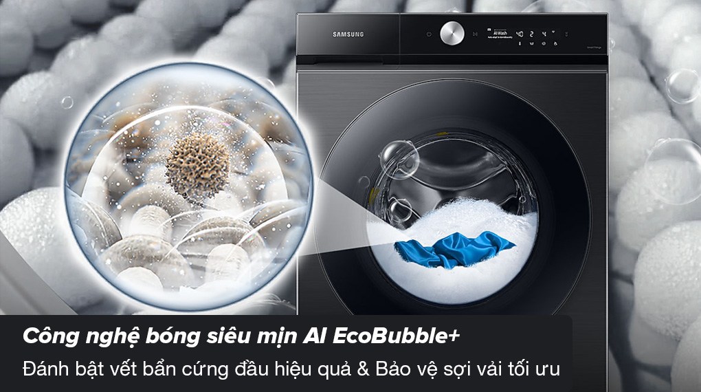 - Công nghệ AI Eco Bubble loại bỏ vết bẩn hiệu quả, bảo vệ sợi vải tối ưu.