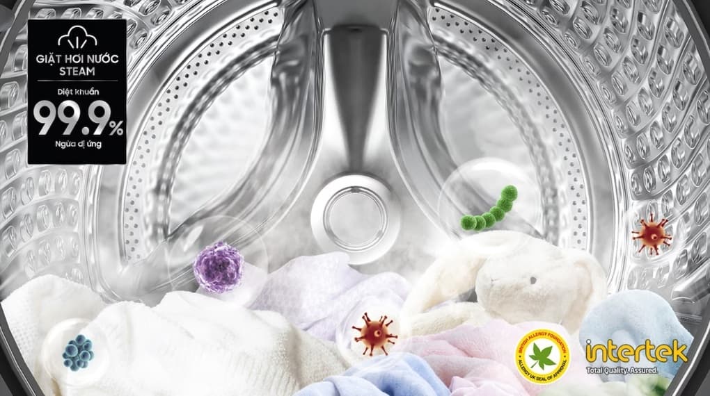 - Công nghệ Hygiene Steam giúp quần áo sạch khuẩn đến 99%, mềm mại êm ái.