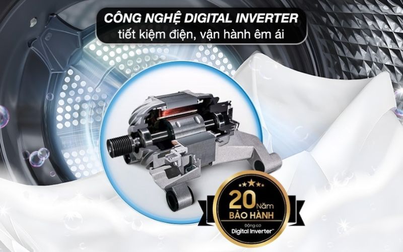 Máy giặt Samsung sử dụng động cơ truyền động trực tiếp, thêm vào đó là công nghệ tiên tiến Digital Inverter đảm bảo cả quá trình vận hành hoạt động bền bỉ, giảm ồn hiệu quả, kiểm soát tốc độ chính xác và tiết kiệm điện năng vượt trội.