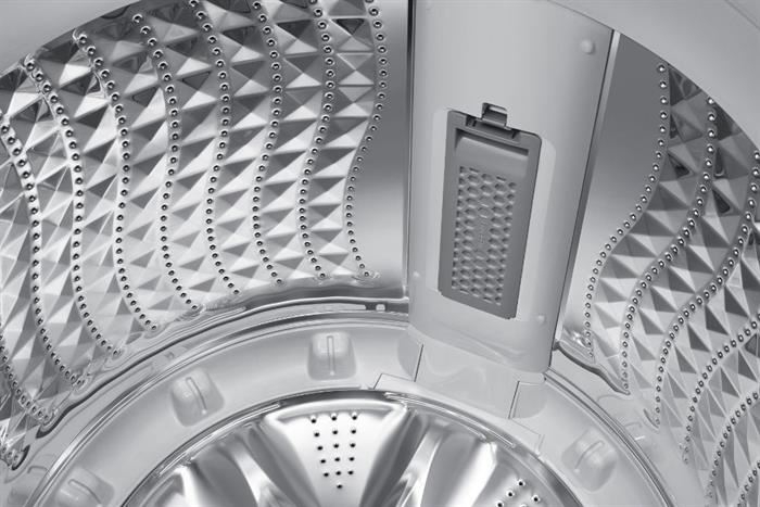 Lồng giặt được chú trọng hơn khi làm bằng thép không gỉ cao cấp, cho độ bền cao, hạn chế hoen gỉ, bám cặn, vi khuẩn, đảm bảo hiệu suất vận hành, giặt sạch, bảo vệ quần áo tối ưu.
