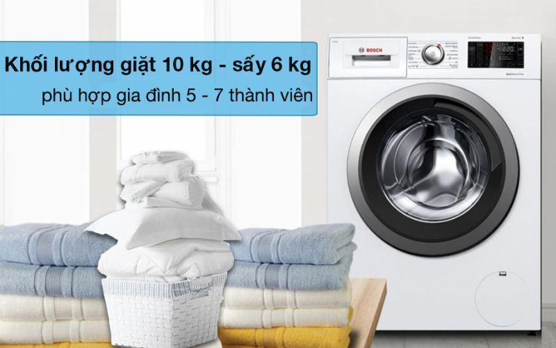 Sản phẩm là dòng máy giặt sấy lồng ngang, cửa trước, lồng lớn có khối lượng giặt 10 kg cùng sấy 6 kg đáp ứng tốt nhu cầu của nhiều gia đình từ 5 - 7 thành viên.