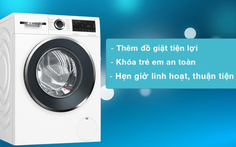 Máy giặt sấy Bosch 10 kg - sấy 6 kg WNA254U0SG tích hợp thêm nhiều tính năng thông minh cho quá trình giặt sấy tiện nghi, giản đơn, an toàn hơn.