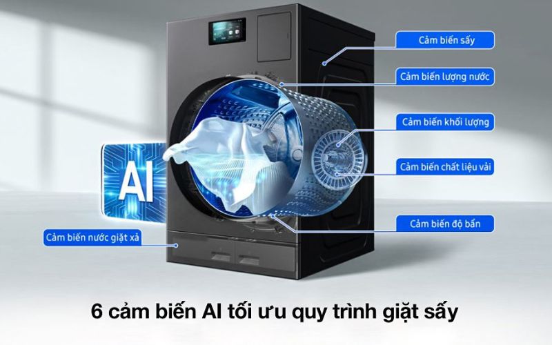 Công nghệ AI Wash & Dry tự động tối ưu chu trình giặt - sấy, làm sạch hiệu quả.