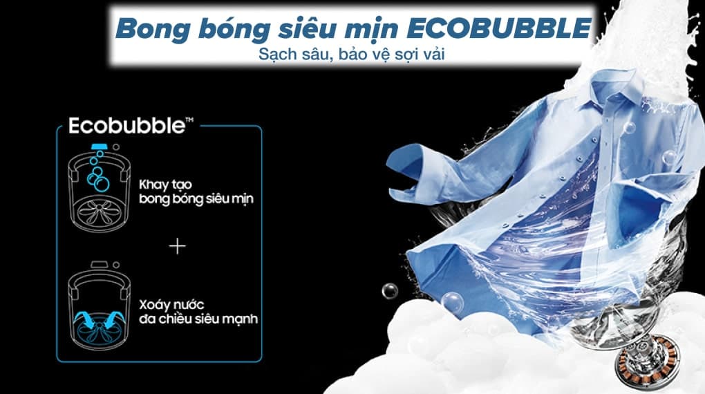 Công nghệ Ecobubble tạo những bong bóng siêu mịn thẩm thấu nhanh đánh bay vết bẩn cứng đầu nhanh chóng