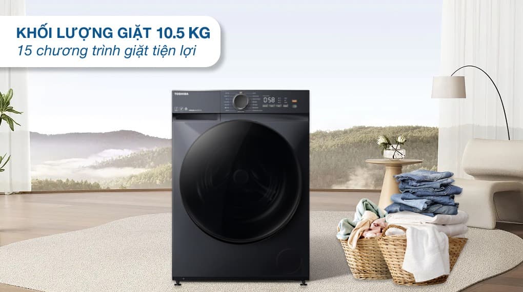 - Khối lượng giặt 10.5 kg, 15 chương trình giặt đa năng phù hợp với nhu cầu giặt giũ của mọi nhà.