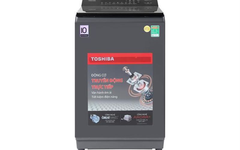 Máy giặt Toshiba cửa trên hiện đại, khối lượng 12kg, 8 chương trình giặt.