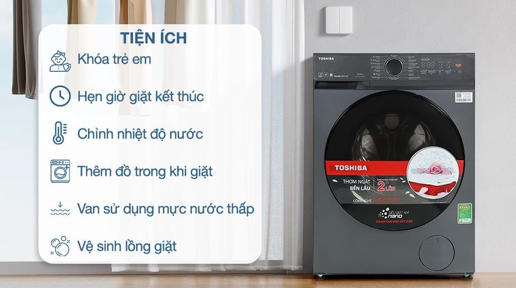 Tính năng khóa trẻ em: Khi nhà có trẻ em hiếu động, tính năng này cho phép người dùng vô hiệu hóa các phím chức năng trên bảng điều khiển, ngăn chặn các thao tác không mong muốn từ phía trẻ.