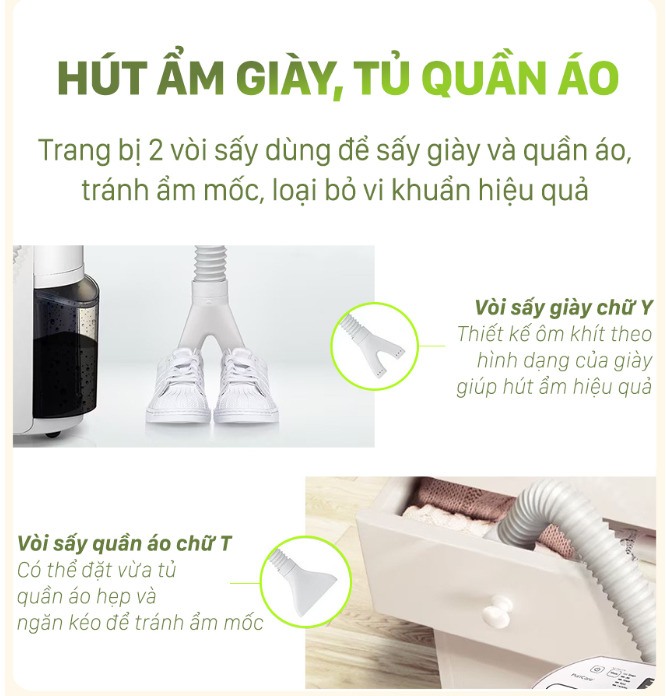 Chức năng hút ẩm giúp giày, quần áo luôn khô thoáng, sạch khuẩn nấm mốc