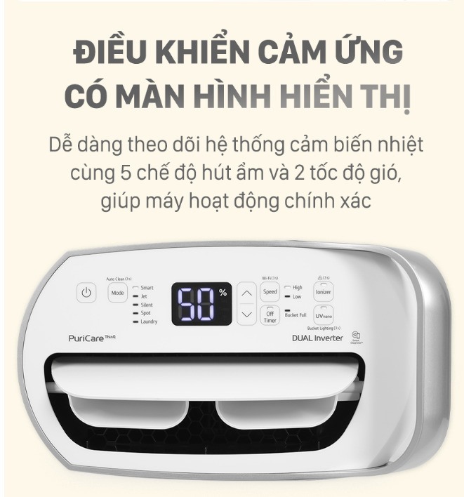 Máy còn trang bị hệ thống cảm biến nhiệt bao gồm đến 5 chế độ hút ẩm cùng 2 tốc độ gió để người dùng linh hoạt chọn lựa giúp máy vận hành chính xác có hiệu quả hút ẩm cao nhất.