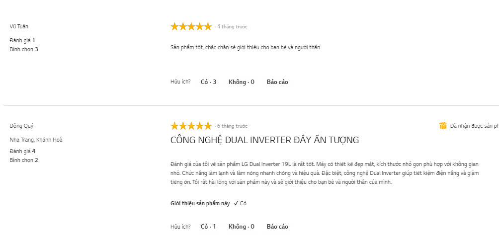 Đánh giá của khách hàng về Máy hút ẩm LG Dual Inverter 19L màu trắng MD19GQSE0.ABAE