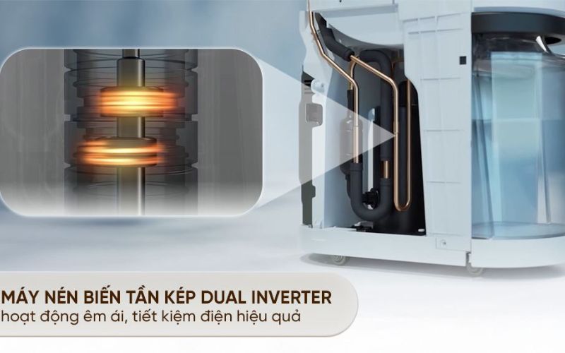 Máy nén biến tần kép Dual Inverter vận hành êm ái, tiết kiệm điện năng hiệu quả.