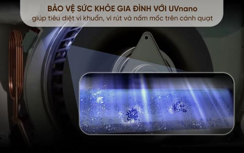 Công nghệ UVnano diệt khuẩn, vi rút, nấm mốc trên cánh quạt, tạo luồng khí sạch.