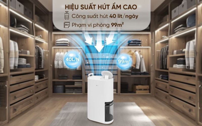 Công suất hút 40 lít/ngày kiểm soát độ ẩm cho không gian lớn 99m2