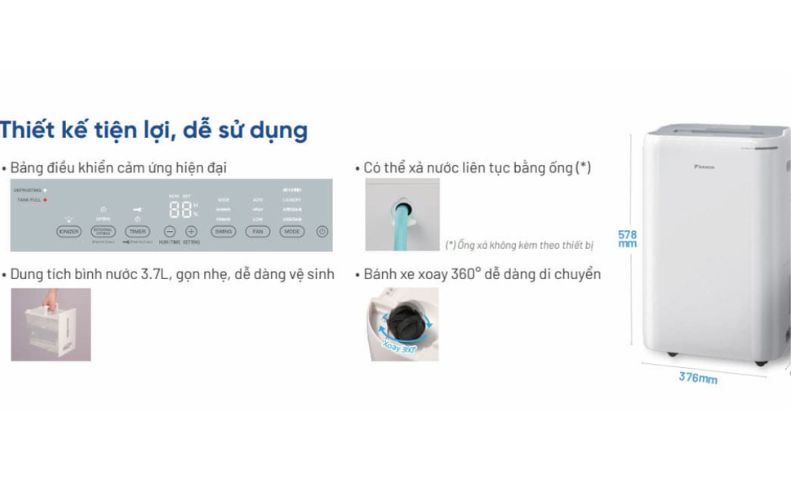 | Tiện ích | Có bánh xe di chuyển, Màn hình hiển thị độ ẩm |